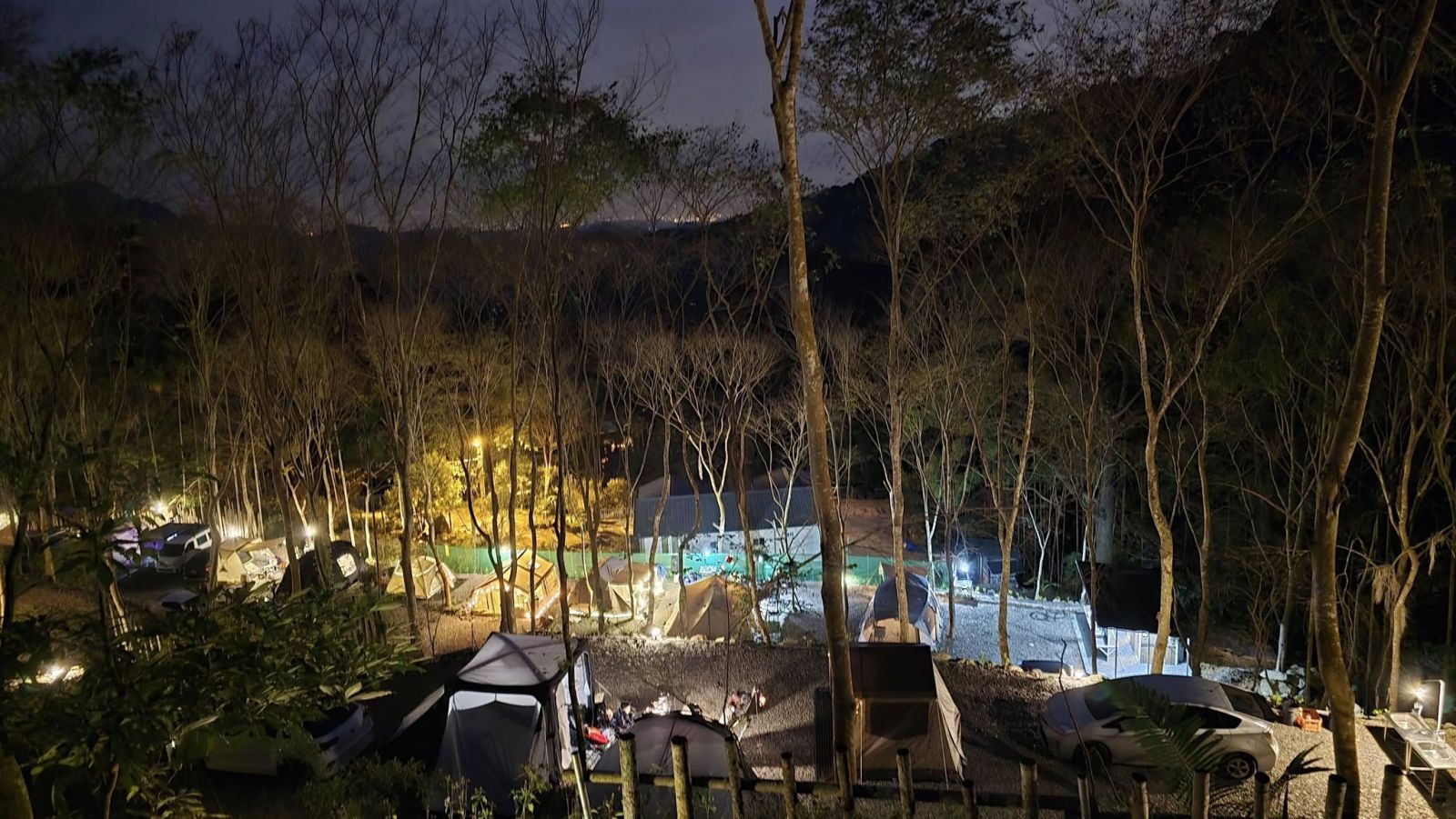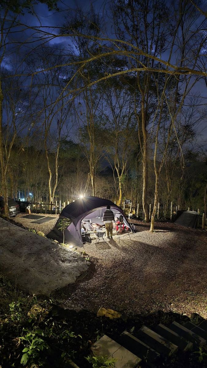 忙完了所有露友的營位安排,處理好每個人的需求後,一坐下來整個疲倦感湧上心頭,感覺體內的熱情熄火了,可是營區的燈火一區一區慢慢的點亮了…………